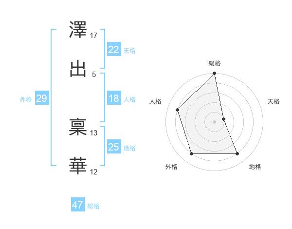 澤出 稟華さんを姓名の画数から五運を鑑定