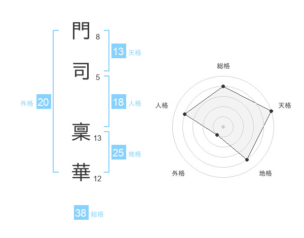 占い結果は姓名判断である以上、良い場合も悪い場合もありますが、決してお名前を誹謗中傷するものでなく、画数の自動計算によって得られたものです。また、本サイトの検索によって得られた鑑定結果で、第三者を誹謗中傷したり名誉を棄損するような行為を禁じます。