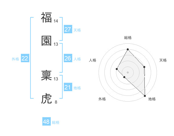 福園 稟虎さんを姓名の画数から五運を鑑定