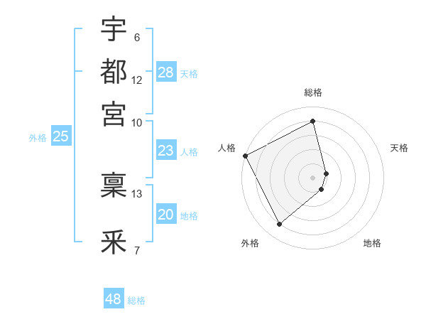 宇都宮 稟釆さんを姓名の画数から五運を鑑定