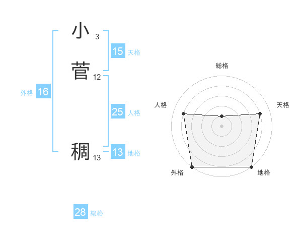 小菅 稠さんの外格は16画の5点!
