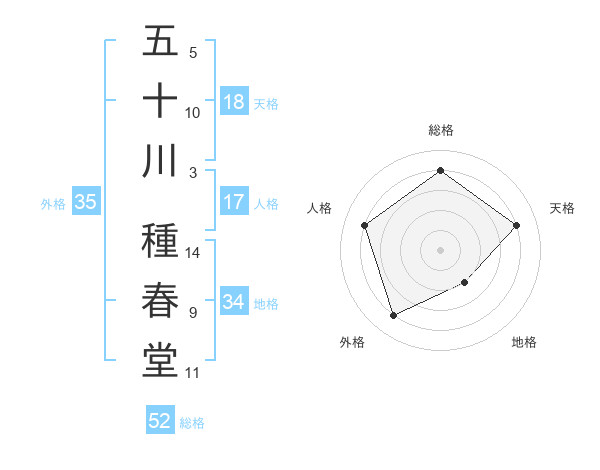 五十川 種春堂さんを姓名の画数から五運を鑑定