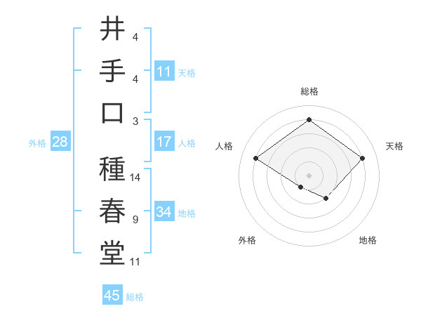 井手口 種春堂さんを姓名の画数から五運を鑑定