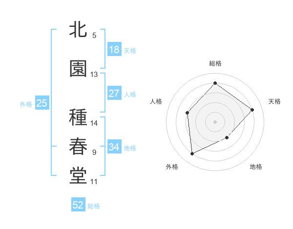 北園 種春堂さんを姓名の画数から五運を鑑定