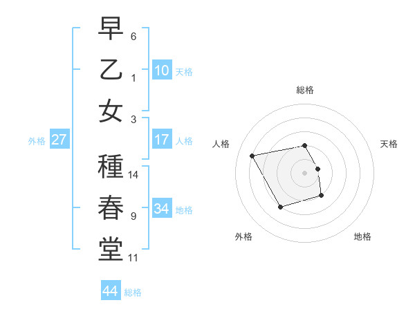 早乙女 種春堂さんの総格は44画の2点!