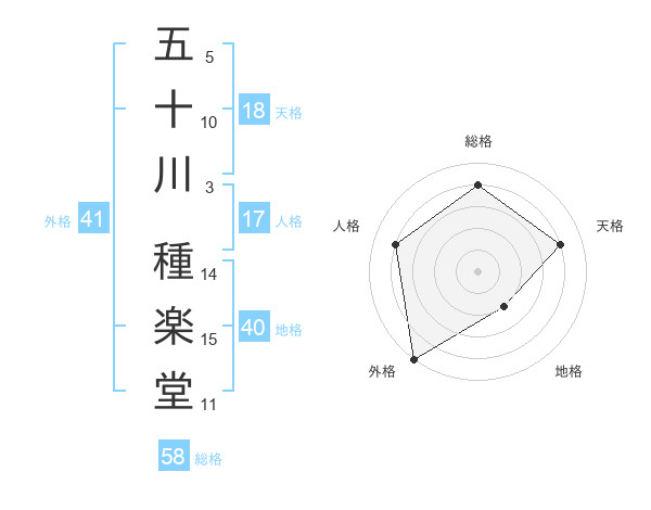五十川 種楽堂さんを姓名の画数から五運を鑑定