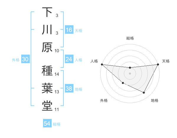 下川原 種葉堂さんを姓名の画数から五運を鑑定