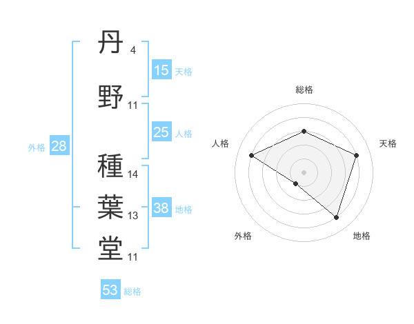 丹野 種葉堂さんを姓名の画数から五運を鑑定