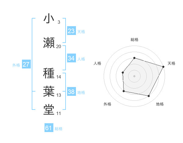 小瀬 種葉堂さんの総格は61画の3点!