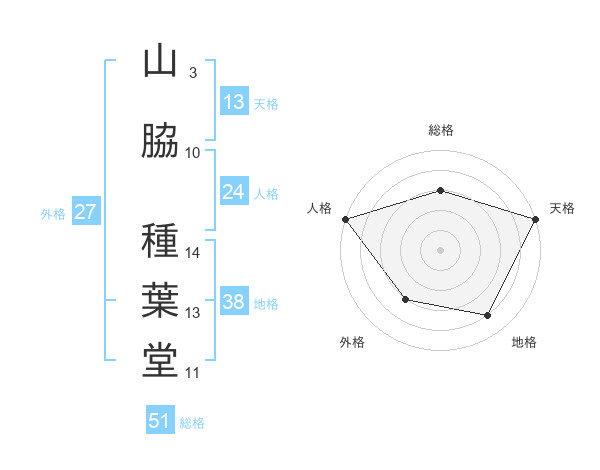 山脇 種葉堂さんの総格は51画の3点!