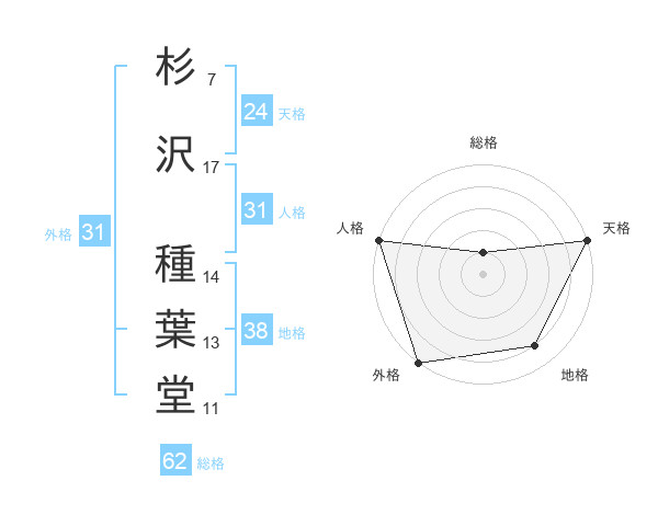 杉沢 種葉堂さんを姓名の画数から五運を鑑定