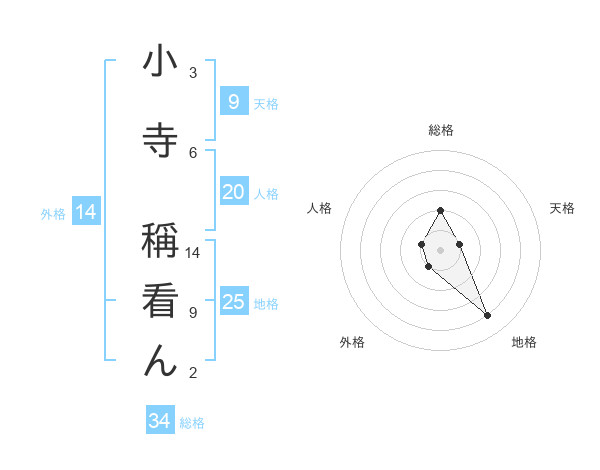 小寺 稱看んさんを姓名の画数から五運を鑑定