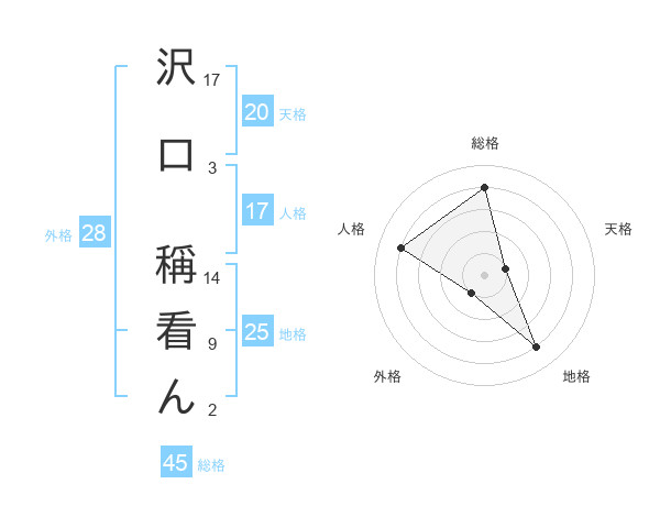 沢口 稱看んさんを姓名の画数から五運を鑑定