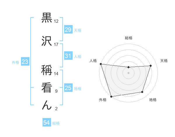 黒沢 稱看んさんを姓名の画数から五運を鑑定