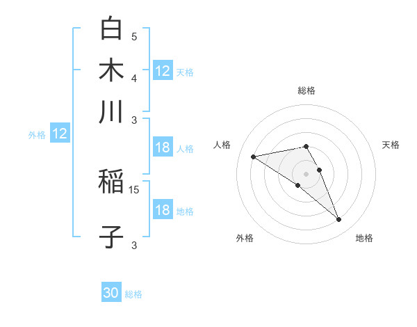 白木川 稲子さんの総格は30画の2点!