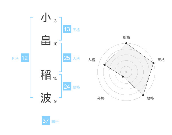 小畠 稲波さんを姓名の画数から五運を鑑定