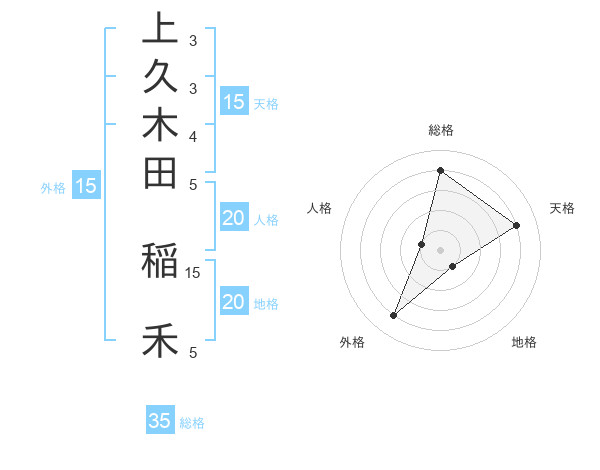 上久木田 稲禾さんを姓名の画数から五運を鑑定