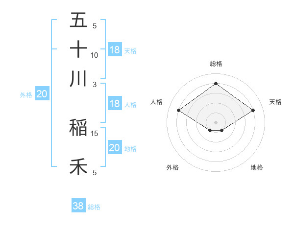 五十川 稲禾さんの総格は38画の4点!
