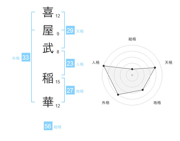 喜屋武 稲華さんを姓名の画数から五運を鑑定