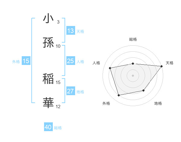 小孫 稲華さんを姓名の画数から五運を鑑定