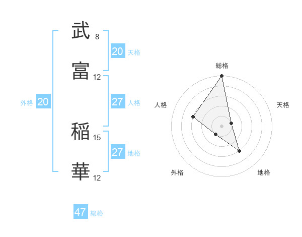 武富 稲華さんの総格は47画の5点!