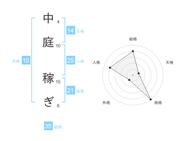 中庭 稼ぎさんの総格は35画の4点!