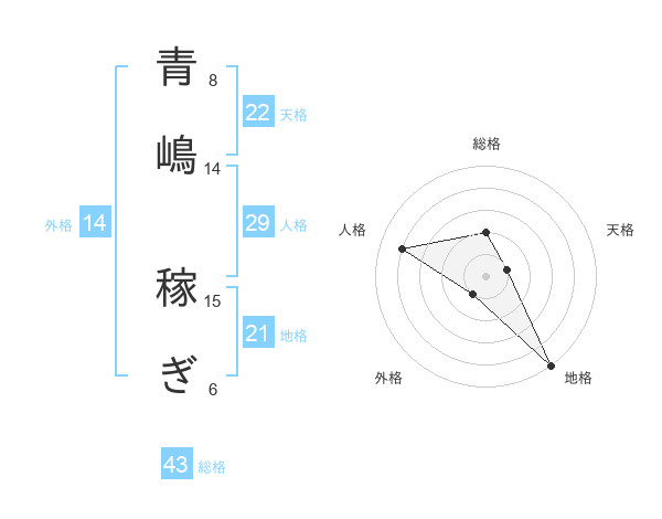 青嶋 稼ぎさんの総格は43画の2点!