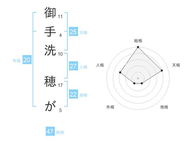 御手洗 穂がさんの総格は47画の5点