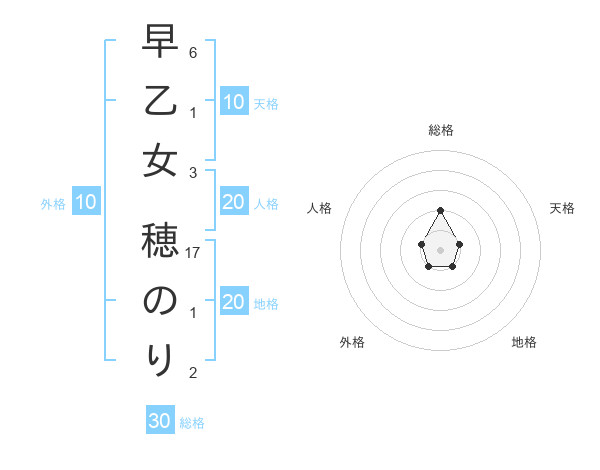 早乙女 穂のりさんを姓名の画数から五運を鑑定