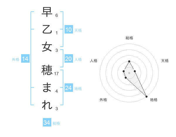 早乙女 穂まれさんの総格は34画の2点