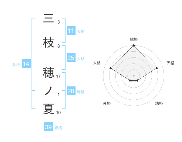 三枝 穂ノ夏さんを姓名の画数から五運を鑑定