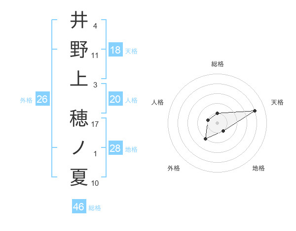 井野上 穂ノ夏さんを姓名の画数から五運を鑑定