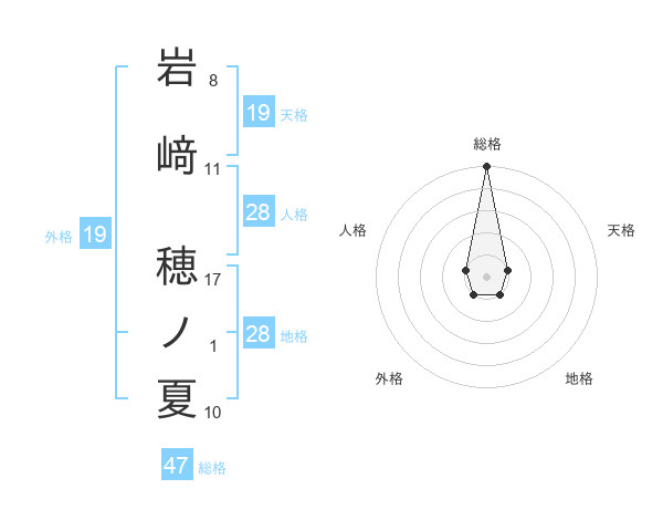 岩﨑 穂ノ夏さんの総格は47画の5点