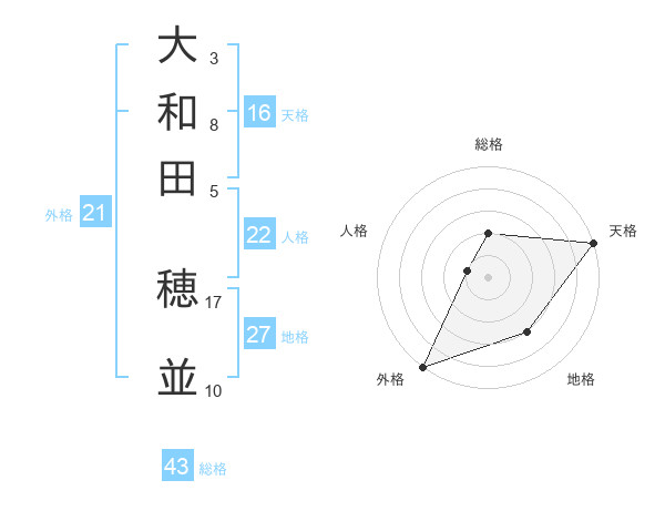 大和田 穂並さんの外格は21画の5点!