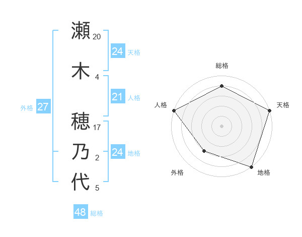 瀬木 穂乃代さんを姓名の画数から五運を鑑定