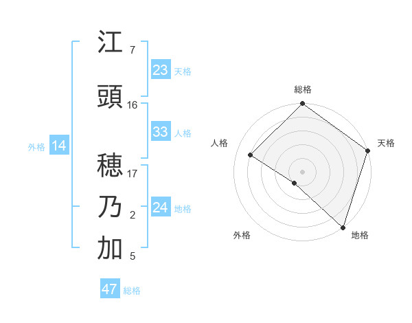 江頭 穂乃加さんの総格は47画の5点!