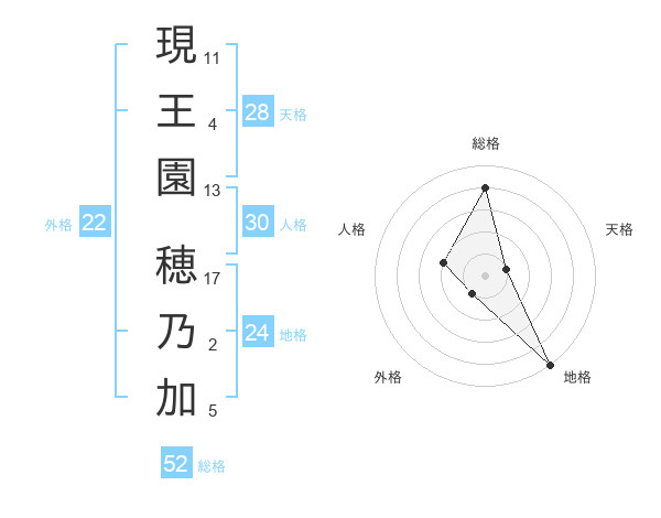 現王園 穂乃加さんを姓名の画数から五運を鑑定