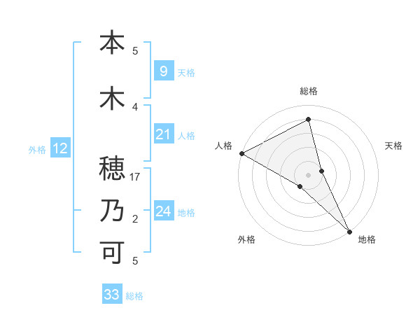 本木 穂乃可さんを姓名の画数から五運を鑑定