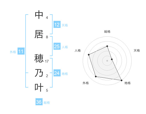中居 穂乃叶さんを姓名の画数から五運を鑑定