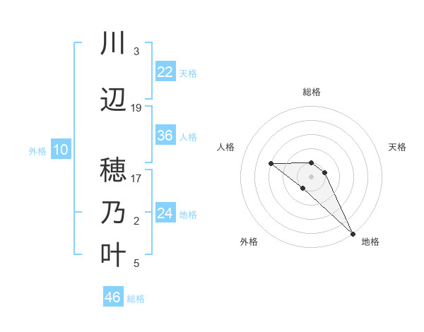 川辺 穂乃叶さんの総格は46画の1点!