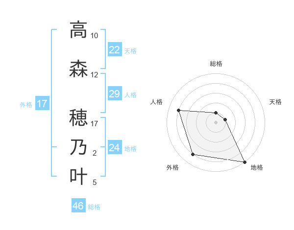 高森 穂乃叶さんを姓名の画数から五運を鑑定