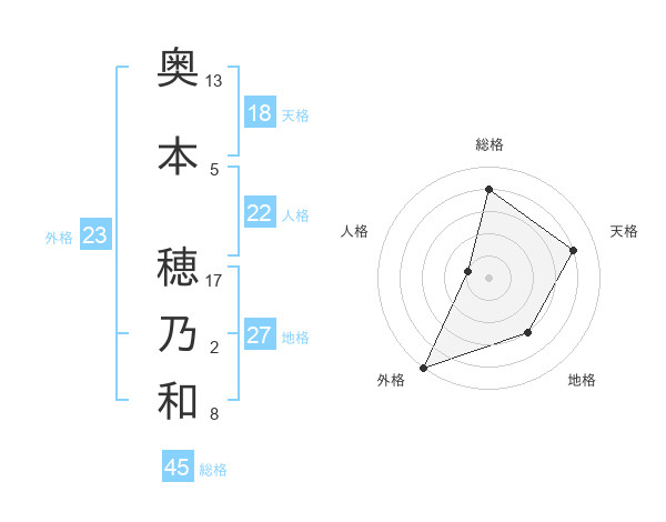 奥本 穂乃和さんの総格は45画の4点!