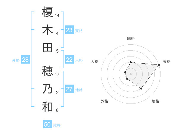 榎木田 穂乃和さんの天格は23画の5点!
