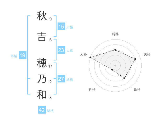 秋吉 穂乃和さんの総格は42画の3点!