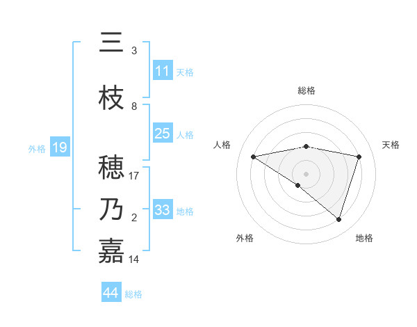 三枝 穂乃嘉さんの総格は44画の2点!