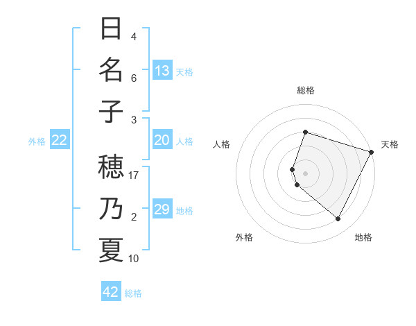日名子 穂乃夏さんを姓名の画数から五運を鑑定