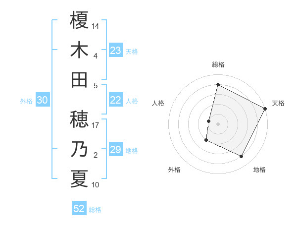 榎木田 穂乃夏さんの総格は52画の4点!