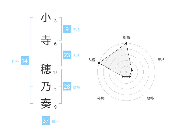 小寺 穂乃奏さんの総格は37画の5点!