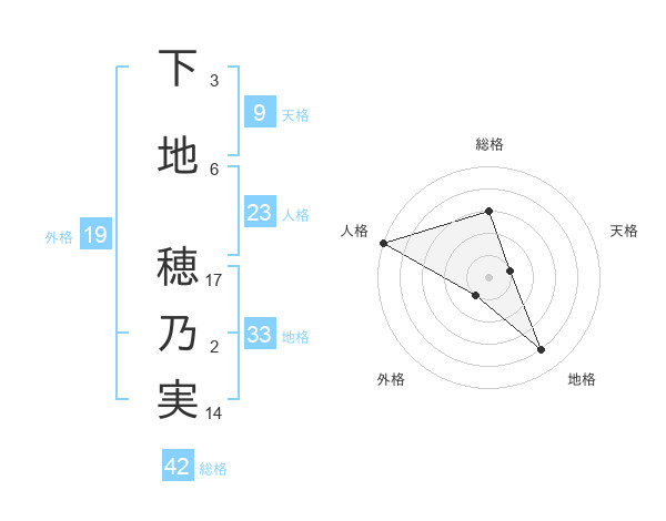下地 穂乃実さんを姓名の画数から五運を鑑定