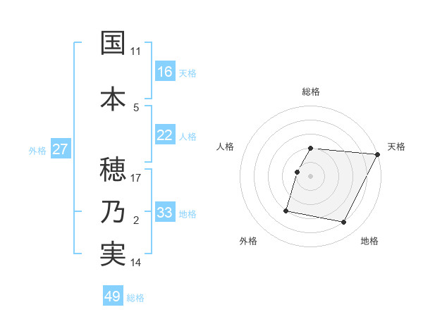 国本 穂乃実さんを姓名の画数から五運を鑑定